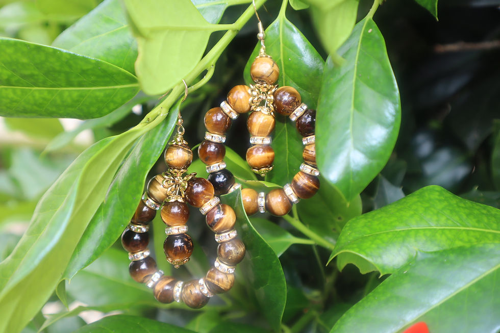 Imperial Jade and Tiger’s Eye Earrings with gold accents
